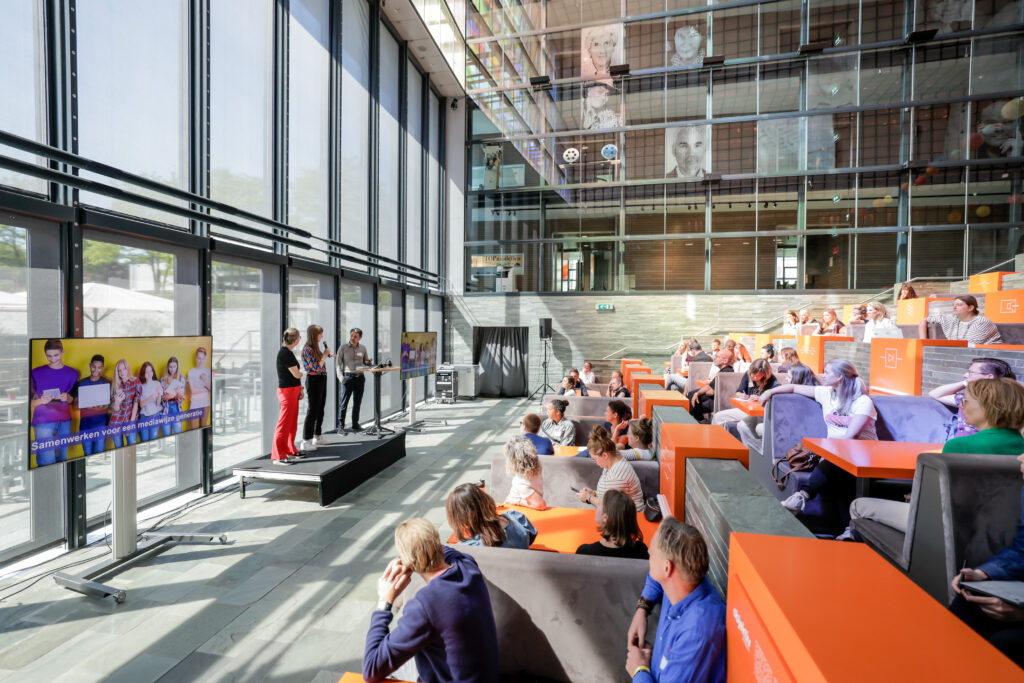 Tijdens de programmalijn Samen rondom het kind staat de vraag centraal hoe we kinderen – van jonge leerlingen tot pubers – samen kunnen begeleiden in hun digitale ontwikkeling. In een fijne en betrokken sfeer trappen moderator Freek Zwanenberg en daggast Ben Hammer het plenaire deel af, samen met sprekers Susanne Lolkema (Bibliotheek Utrecht) en Jacotien Visser (Gemeente Utrecht).